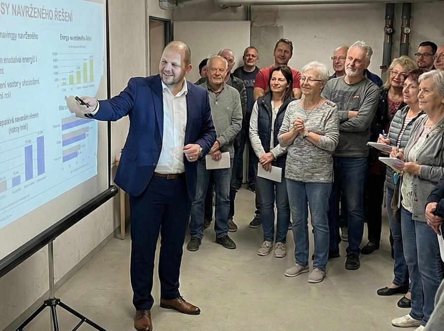 Víme, že nejtěžší není sehnat firmu, ale přesvědčit ostatní vlastníky. Nenecháme vás v tom samotné. Přijdeme na schůzi vlastníků a vše srozumitelně vysvětlíme.